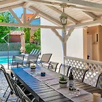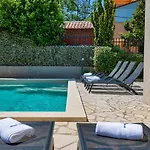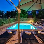 Vila Matija Villa, som ligger inom 10 minuters bilresa från Surf Spot Medulin, har en terrass med utsikt över poolen.